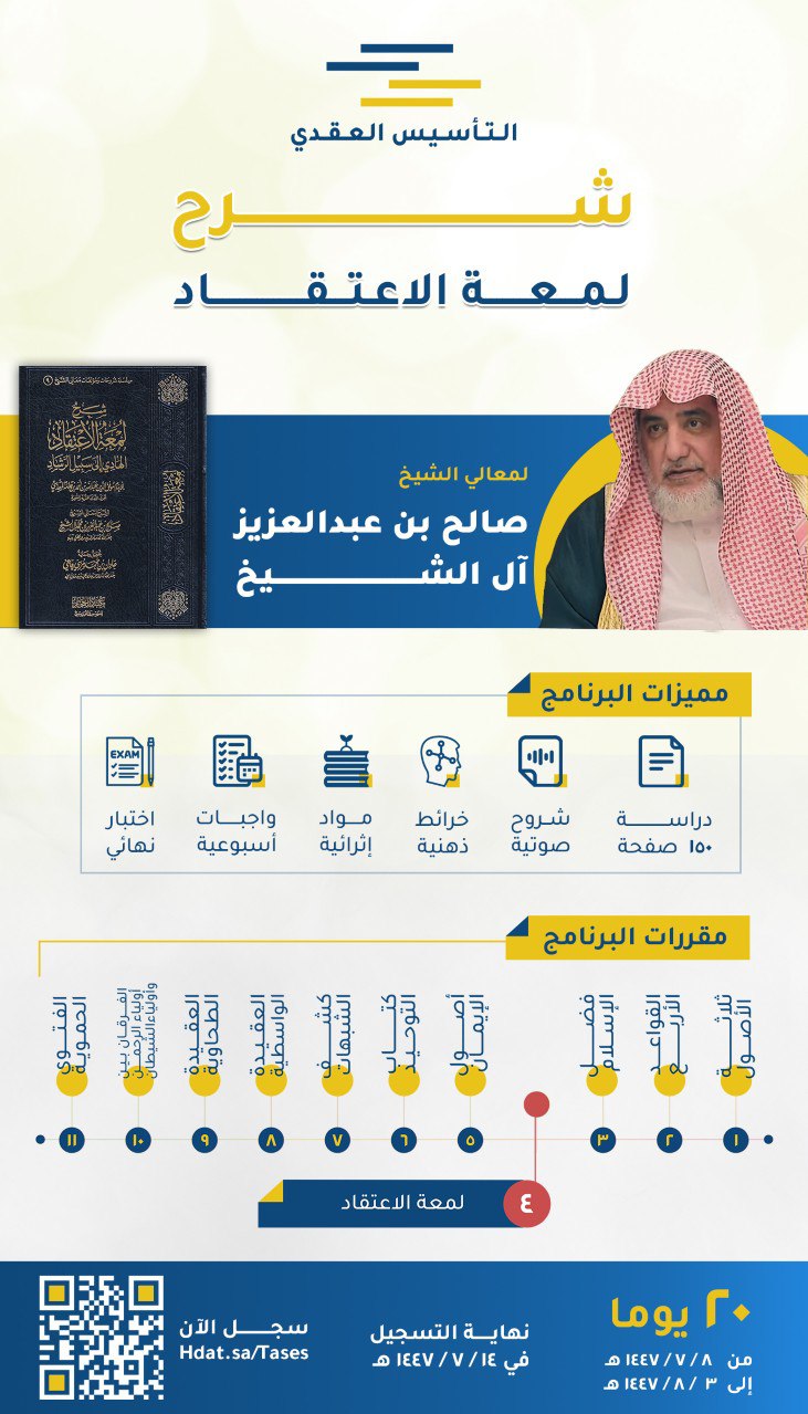 بدء التسجيل في مقرر لمعة الاعتقاد في برنامج التأسيس العقدي